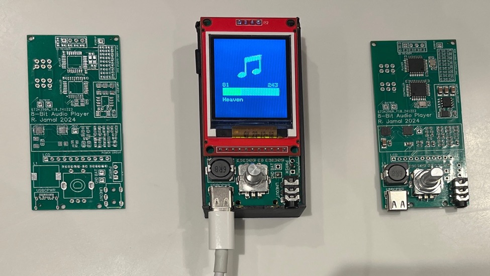 The 8-Bit Audio Player has 2 microcontrollers used: one “slave” to read from the SD card and update the DAC, and a master to coordinate which song to play, and by responding to user input through a rotary encoder and to control a TFT screen with the song progress and a list of songs. To communicate between MCUs, I2C is utilized. When the master wants to receive any information from the slave, it must send a request. Due to certain limitations of the I2C protocol, when any request is sent, the same request routine must run. A request routine is a function run when an I2C request is received. This means that the same data point is sent for every request, in a standard configuration. The request routine is simply a function. It is not, strictly speaking, an ISR. This means that many blocks of code can be efficiently run within the request routine, and blocking calls are considered acceptable.